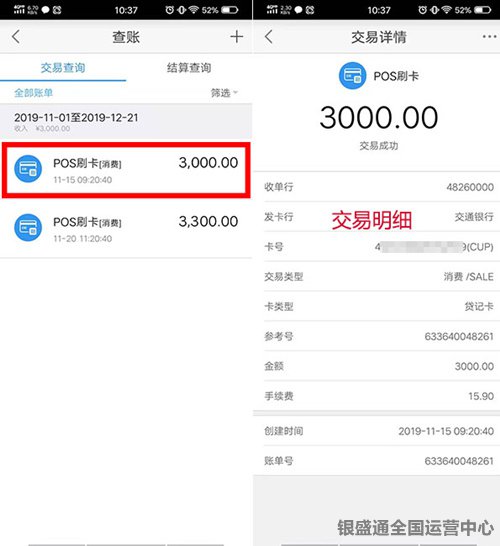 以銀盛支付的銀盛通為例進行說明,第一種方法:直接進入銀盛通APP,點擊查賬,即可看到刷卡的信息和到賬的信息,里面會有一個交易查詢,一個結算查詢,可以根據自己的實際情況進行查詢需要查詢的信息。第二種方法:直接找代理,查看代理的后臺進行查詢到賬情況,第三種方法:直接打電話到銀盛通官網客服4008816160進行查詢。