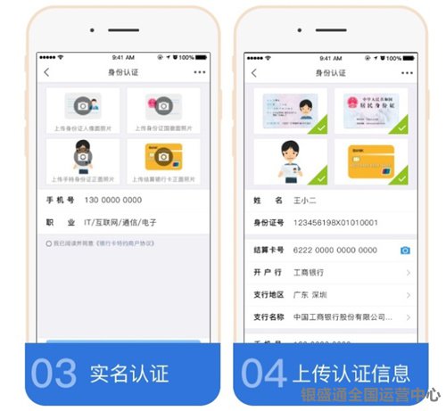在這里會出現身份證正面上傳,身份證反面上傳,手持身份證上傳,綁定自己的儲蓄卡;手機號碼(這里有幾點注意:身份證號碼,結算卡都是自動識別,識別之后需要核對是否無誤,有錯誤需要進行更改。)