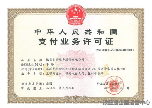 1、深圳銀盛電子支付科技有限公司獲中國人民銀行首批頒發(fā)的《支付業(yè)務(wù)許可證》